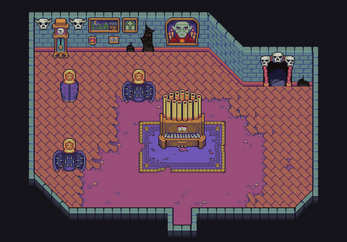 - 8 unique floor tiles including: grass, high-grass, dirt, stone-path, wood flooring, skeleton-flooring and 2 diffirent carpets