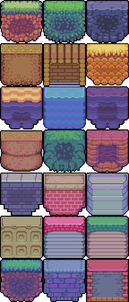 There are also a variety of tiles, most of which have slopes and pattern variation so you can build any world you can think of!
